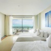 Номера на 2-3 этажах трехэтажного корпуса: 1 двуспальная кровать king size/ 1 двуспальная кровать king size + 1 односпальная кровать/ 2 кровати queen size; отдельная ванная комната с ванной и душевой кабиной (отделена стеной с непрозрачным окном), меблированный балкон (9 м²), вид на море; план номера;