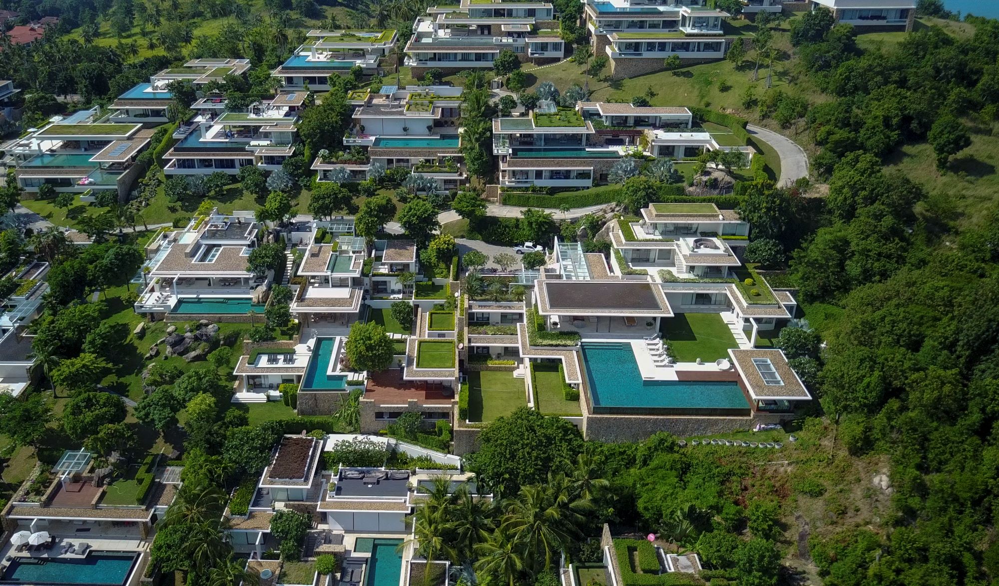 –  вилла № 30 на вершине холма: 1600 м²/ 808 м²; 5 спален, 6 ванных комнат, 1 гостиная, 1 кухня и  бар, частный кинотеатр, тренажерный зал, большая меблированная терраса, винтовая лестница ручной работы, площадка для барбекю на крыше, панорамный бассейн, ландшафтный сад, панорамный вид на 360 градусов; factsheet виллы 30;