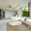 Занимает основной уровень виллы-дуплекса 11B: 1 спальня,  2 ванные комнаты, 1 гостиная открытой планировки с кухней и обеденной зоной, ТВ-зал, туалетная комната, меблированная терраса, пейзажный бассейн с видом на сад/море; план виллы,  factsheet виллы 11B;