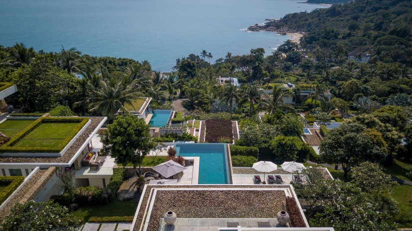 – вилла № 27: 1511 м²/ 891м²; 4 спальни, 6 ванных комнат, 1 гостиная, обеденные зоны, 2 кухни, частный тренажерный зал, ТВ-зал,  террасы, бассейн, зона барбекю, ландшафтный сад, вид на сад/на море; factsheet виллы 27;