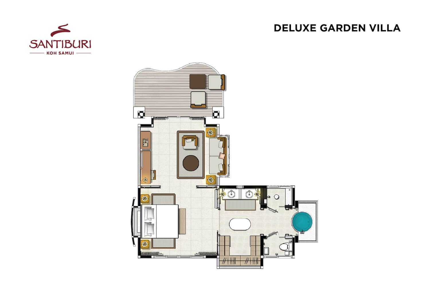 • 8 номеров Deluxe Garden Plunge Pool Villa (115 м², макс. 3+1 или 2+2).