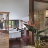 Расположена у пляжа и состоит из трех отдельных зданий — двух вилл с одной спальней с двуспальной кроватью king-size, каждая с ванной комнатой (2 раковины, ванна и душ в каждой ванной) и гостиной, персональный бассейн в закрытом дворике, прямой выход на пляж, см.план номера.
