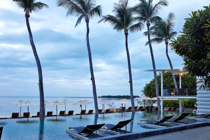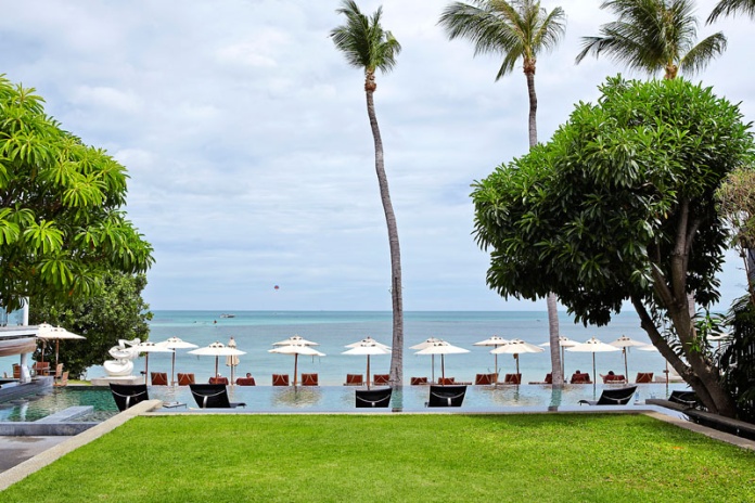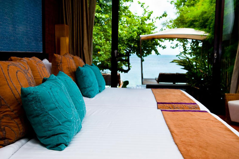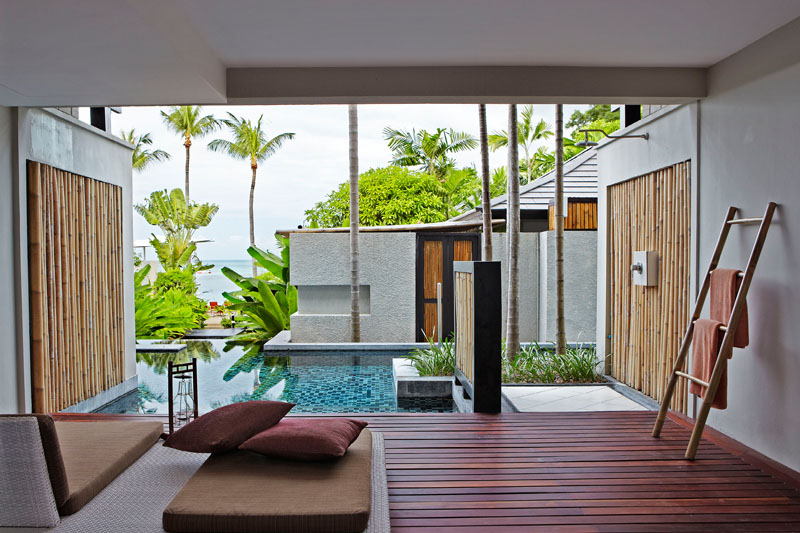 Вилла в тайском стиле расположена на берегу моря, 2 спальни: двуспальная кровать king-size и 2 односпальные кровати, гостиная, 2 ванные комнаты, терраса с лежаками и обеденным столом, персональный бассейн, вид на море.