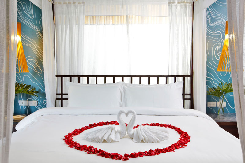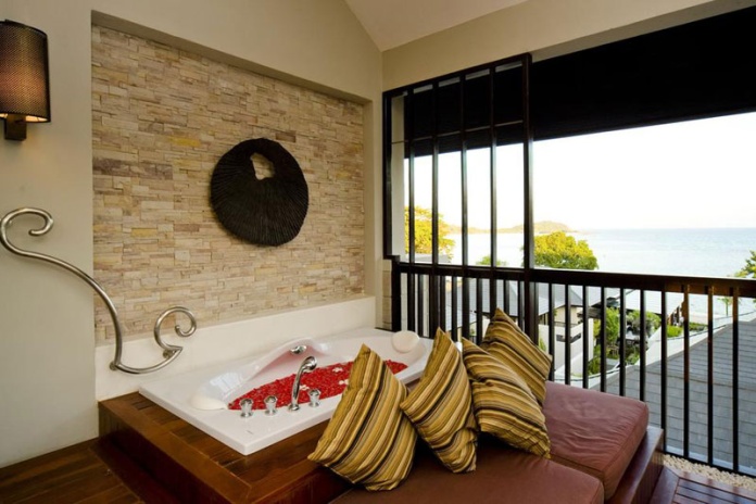 Угловые номера расположены на 2 и 3 этажах, двуспальная кровать king-size, гостиная зона с небольшим столиком и креслами, ванная комната с ванной или душем, балкон, джакузи на балконе, вид на море;