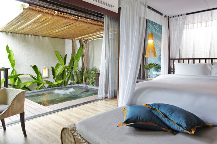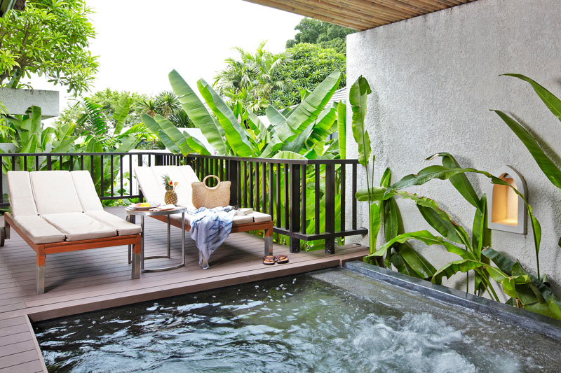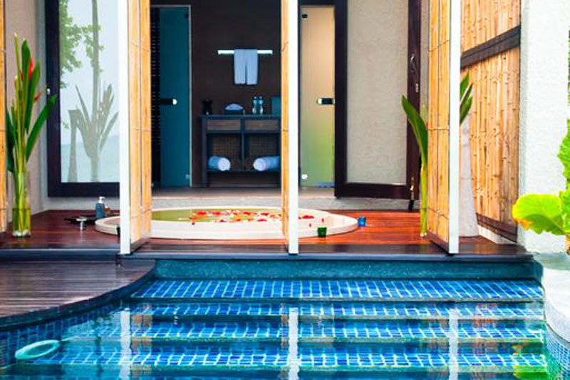 В нескольких шагах от пляжа, каждая отдельная вилла обставлена в восточном стиле и имеет отдельный вход, двуспальная кровать king-size или 2 односпальные кровати, дополнительную кровать в данном типе номера не ставят, ванная комната с гидромассажной ванной и душ под открытым небом, терраса с лежаками, небольшой персональный бассейн, частичный вид на море;