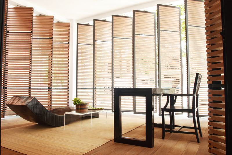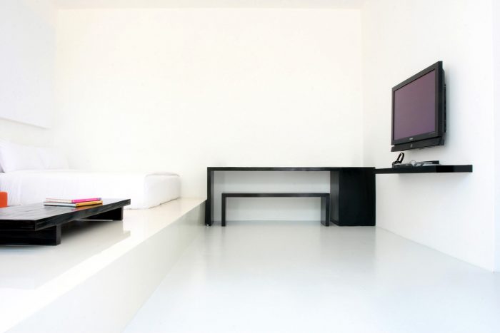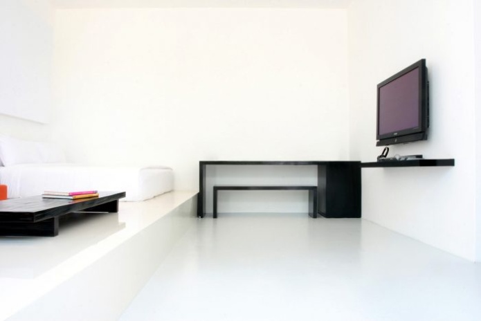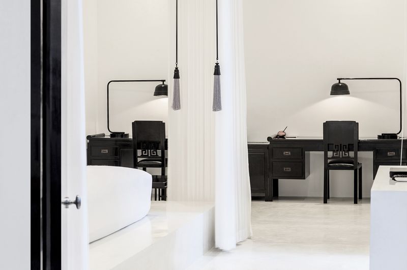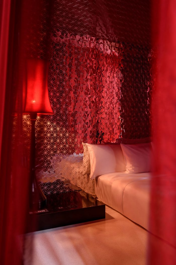 Отель состоит из 20 двухэтажных корпусов и вилл. Номера оформлены в минималистском стиле с экзотическими элементами декора. Отель гордится своей библиотекой, которая насчитывает более 1400 книг, а также уникальным красным бассейном.