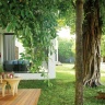 2 спальни: в главной спальни кровать изготовленная на заказ шириной примерно 3,35 метра, во второй спальни: раздельные кровати, гостиный уголок и обеденная зона, гардеробная, ванная комната с душем, терраса с открытым джакузи, вид на сад;