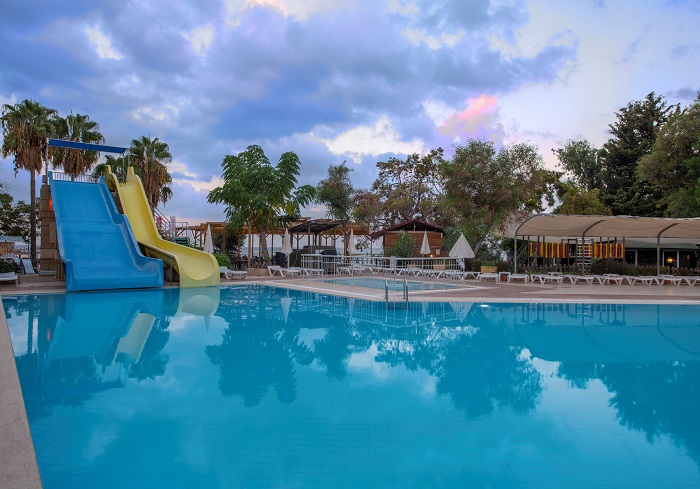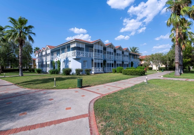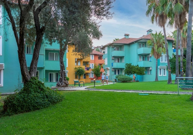 Отель Armas Green Fugla Beach Hotel расположен в поселке Турклер, на берегу моря и состоит из 20 зданий, в каждом из которых 18 номеров.
