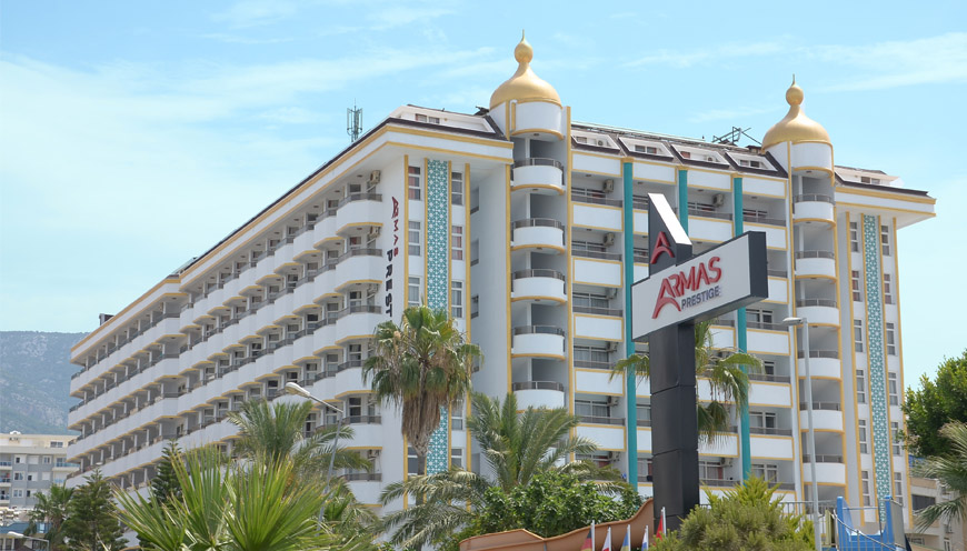 Отель Armas Prestige расположен в 150 м от моря, в поселке Махмутлар. Отель находится в 8 км от города Алания, в 130 км от аэропорта.