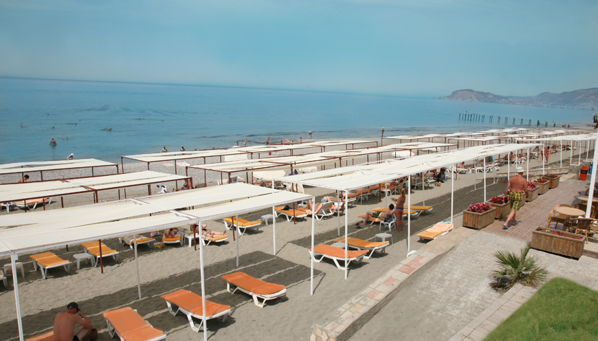 частная пляжная зона в 150 м от отеля (лежаки и зонтики — бесплатно)