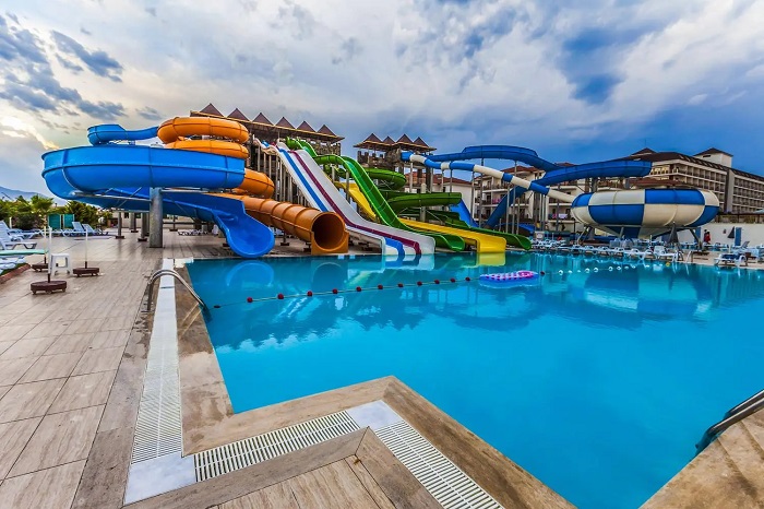 К услугам гостей стандартные и семейные номера, спа-центр, тематические рестораны, аквапарк.