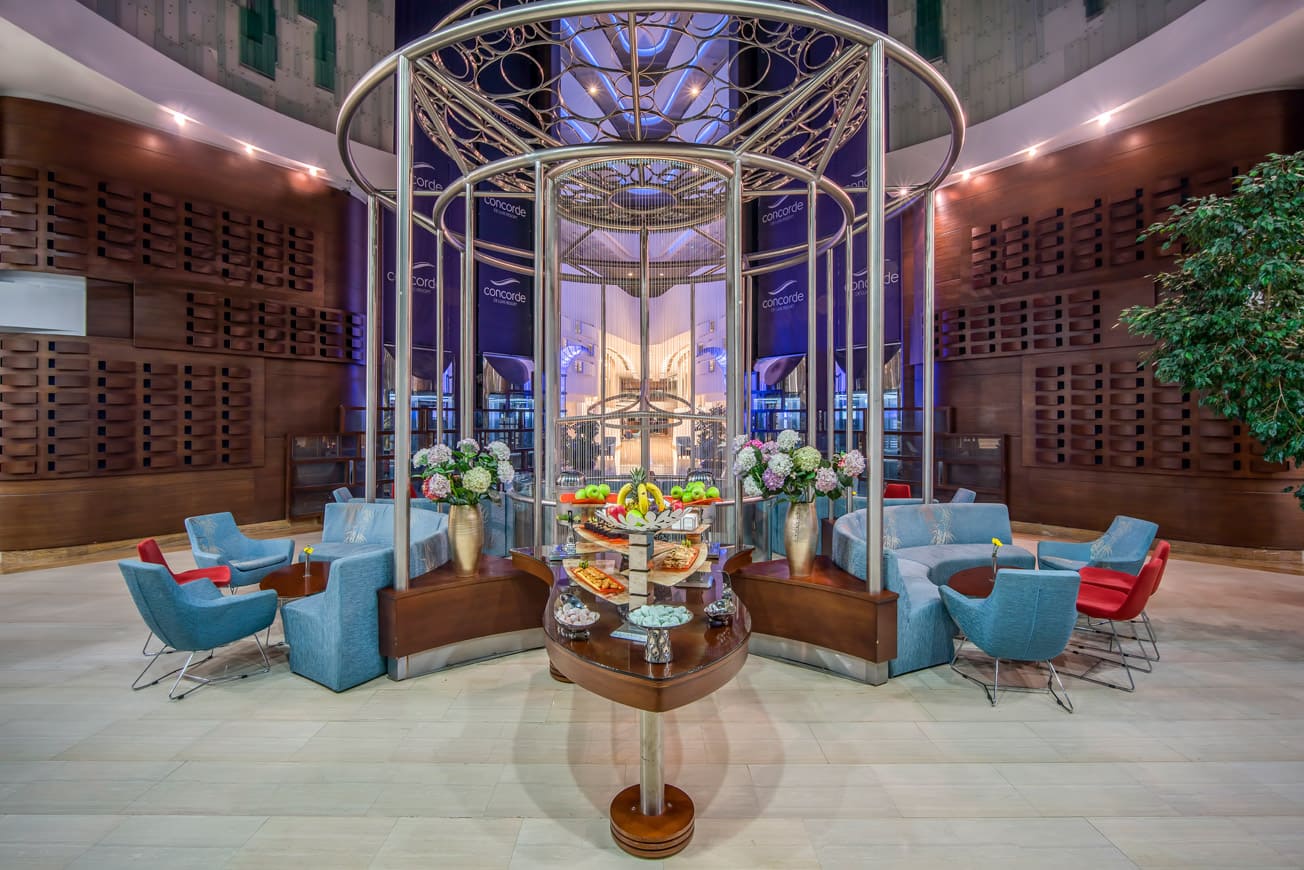 Отель Concorde De Luxe Resort расположен на берегу моря, в районе Лара, в 10 км от аэропорта. Состоит из одного 7-ми этажного здания, выполненного в форме самолета.