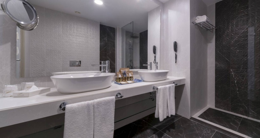 В номерах: телефон, телевизор с музыкальными каналами, чайник, макси-бар (платно), мини-бар, фен, халат и тапочки, сейф, набор для приготовления чая/кофе, центральное кондиционирование, зеркало для макияжа, ковровое покрытие на полу, Wi-Fi.