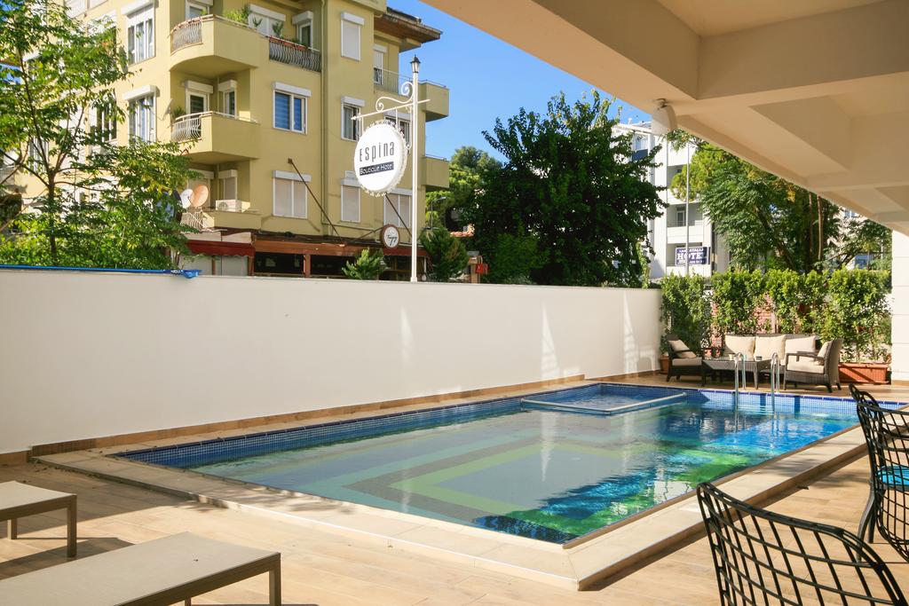 Бутик-отель Espina расположен на средиземноморском побережье. До пляжа Лара 10 минут ходьбы. Отель находится в 8 км от центра Анталии и в 500 метрах от торгового центра Terra City. Часовая башня и ворота Адриана — в 11 км, археологический музей находится в 13 км, океанариум Анталии — в 14 км от отеля.