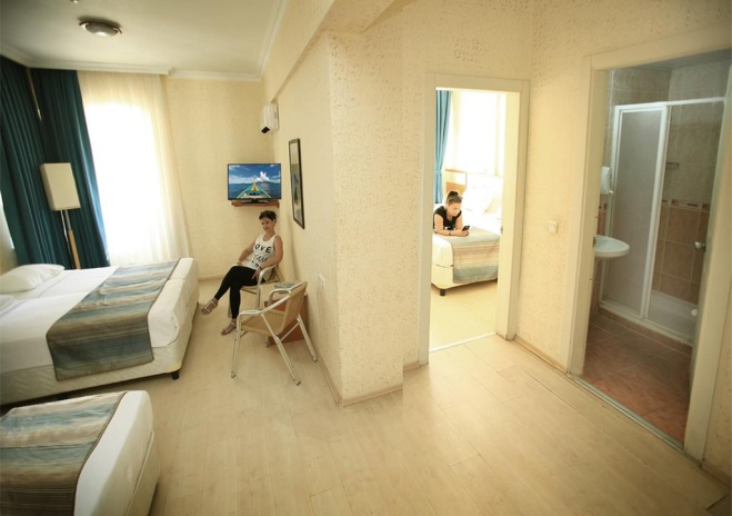 Отель расположен в 7 км от аэропорта, в 10 км от центра г.Анталья, в 300 м через дорогу от городского пляжа.