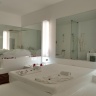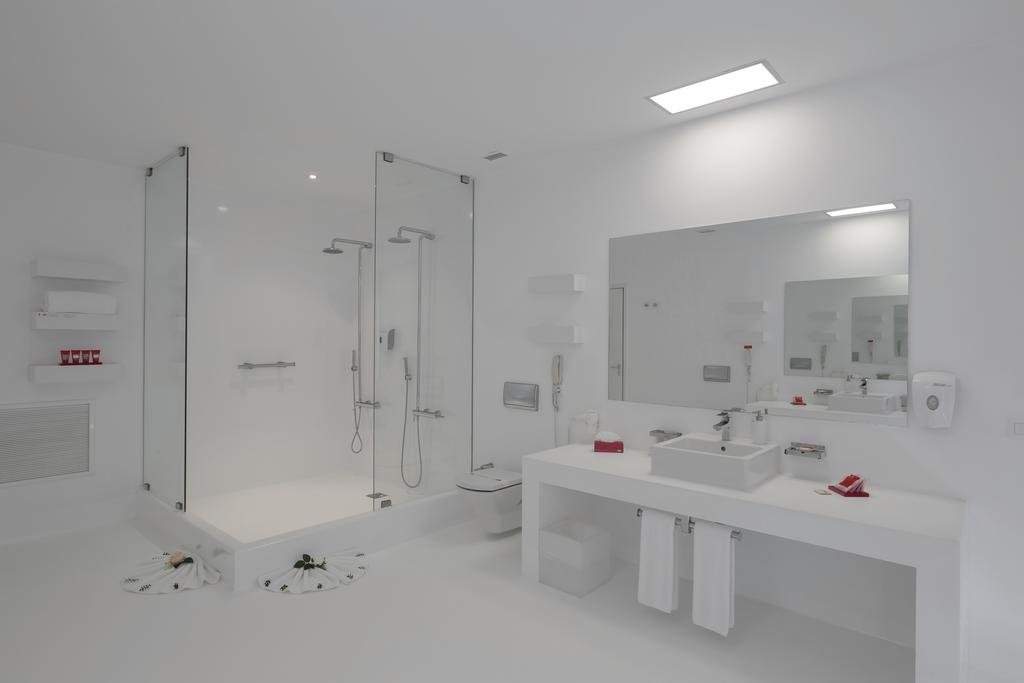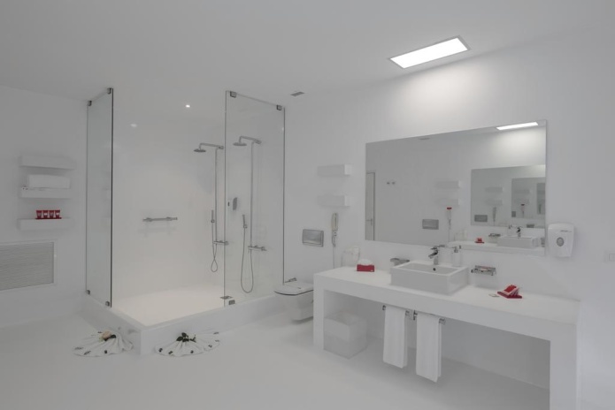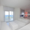 В каждом номере отеля с белоснежным минималистичным дизайном есть балкон с диваном.