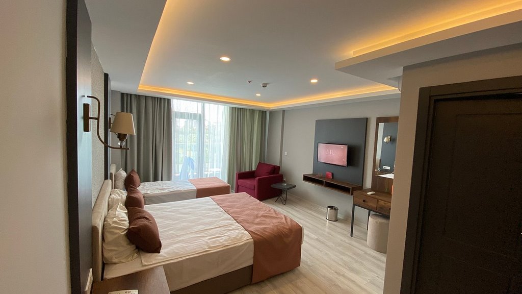 В номерах: ламинированный пол, мини-бар (безалкогольными напитками бар пополняется только в день заезда), телефон, сейф, чайно-кофейный набор, телевизор, фен, сплит-кондиционер, Wi-Fi.