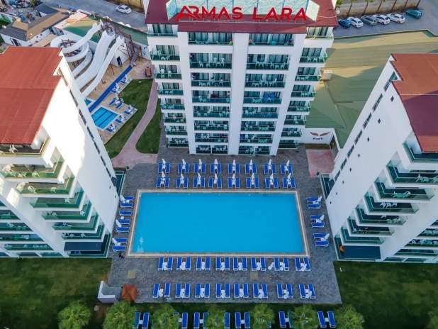 Отель Lavia Hotels Lara (ex. Armas Lara) расположен в районе Лара в 650 м от моря, в 11 км от аэропорта города Антальи. Состоит из трех восьмиэтажных зданий.
