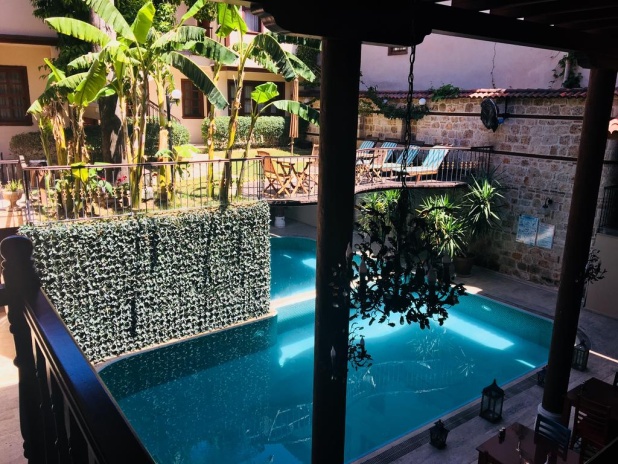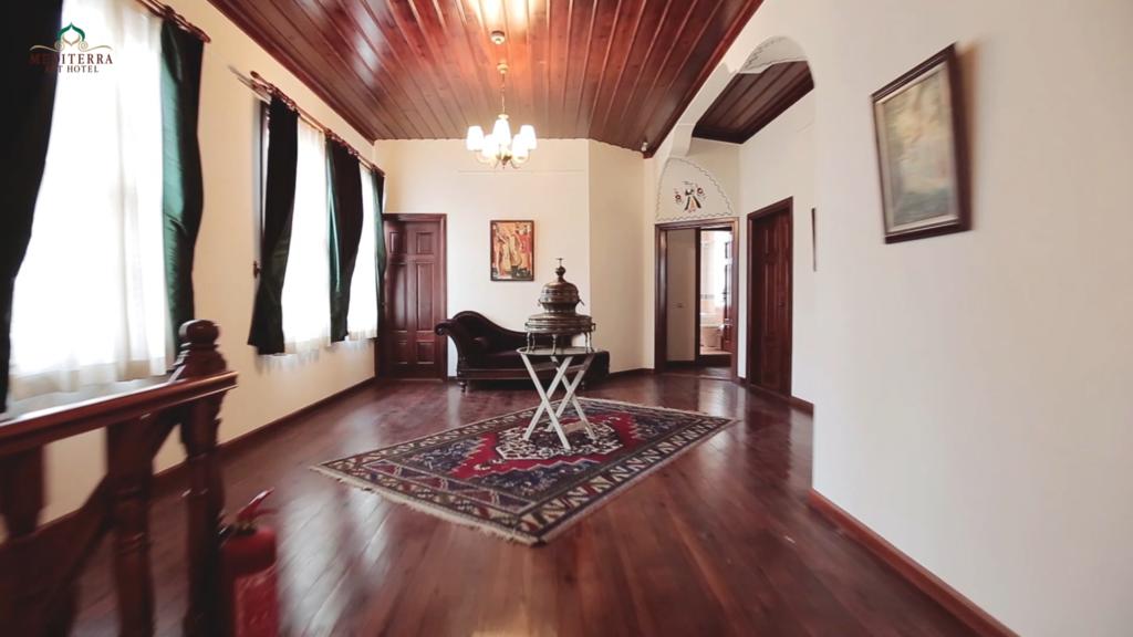 Арт-отель Mediterra занимает здание в османском стиле, которое сохранило оригинальные исторические черты. На территории отеля, расположенного в старом районе Анталии Калеичи, разбит зеленый сад с бассейном, во внутреннем дворике работает ресторан. Также при отеле работает художественная галерея Медитерра.