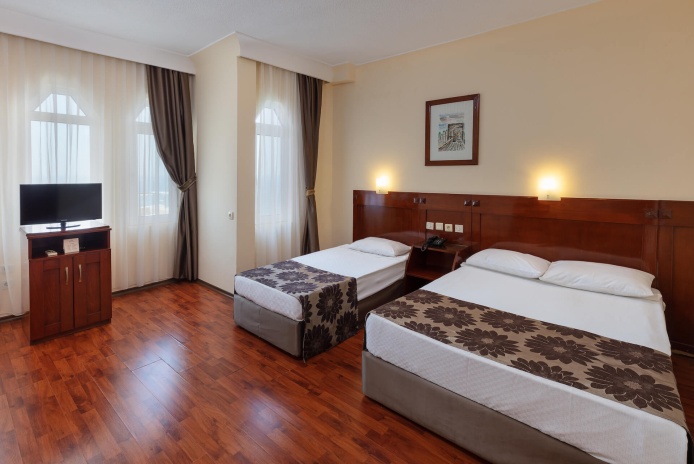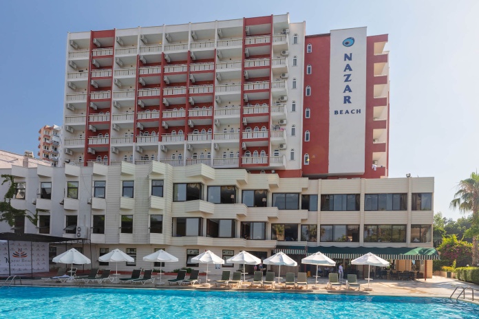 Городской отель Nazar Beach City Resort расположен в районе города Анталья – Лара. Отель состоит из одного 9- этажного здания и предлагает номера с видами на море и горы.