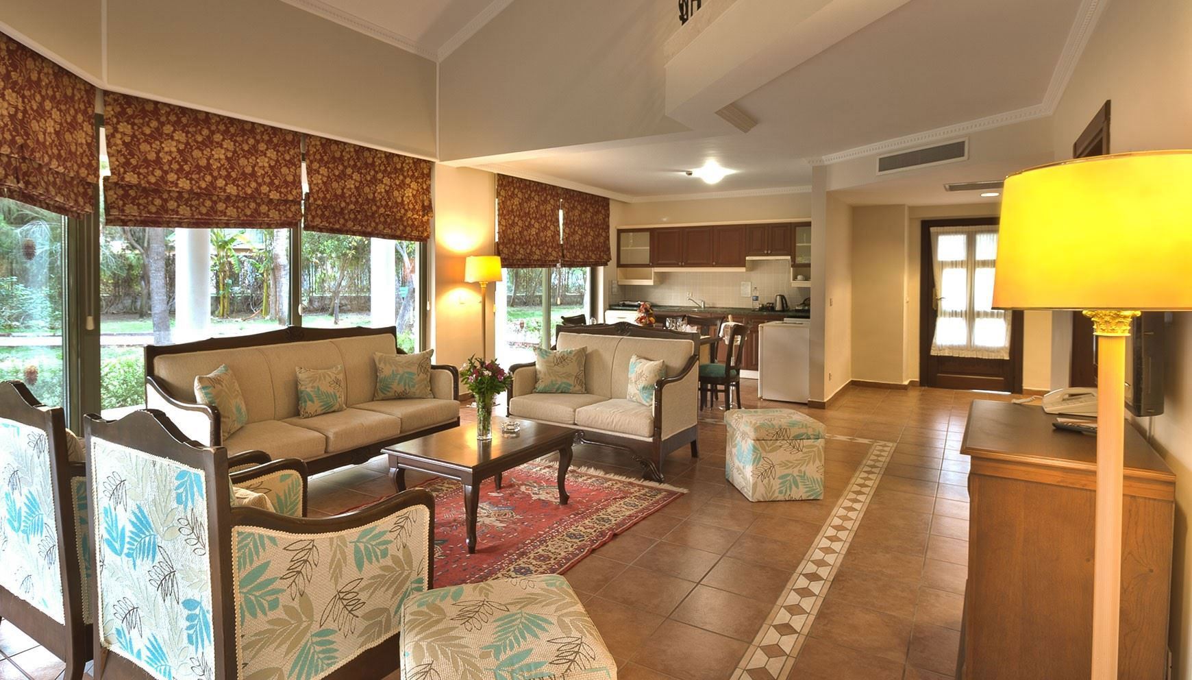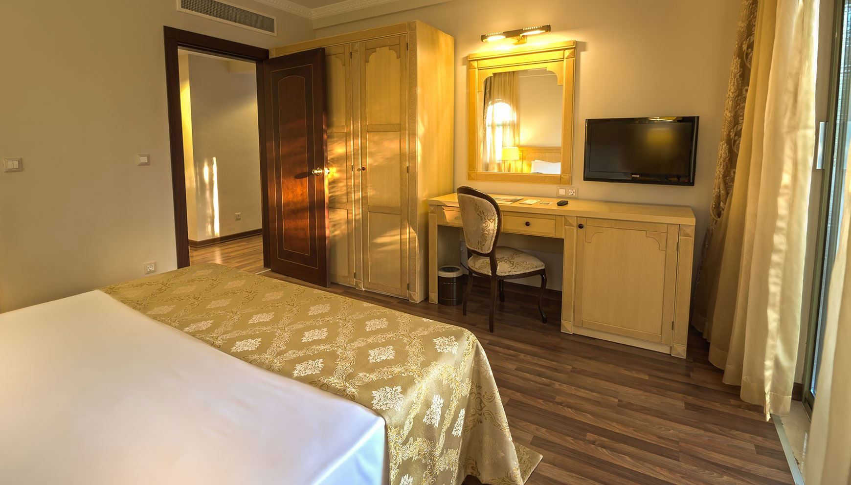Номера расположены в блоках Сан-Марко и Санта-Мария, 2 спальни (дверь между комнатами): 1 двуспальная кровать и 2 односпальные кровати, гостиная зона со столом и стульями, ванная комната с ванной, балкон;