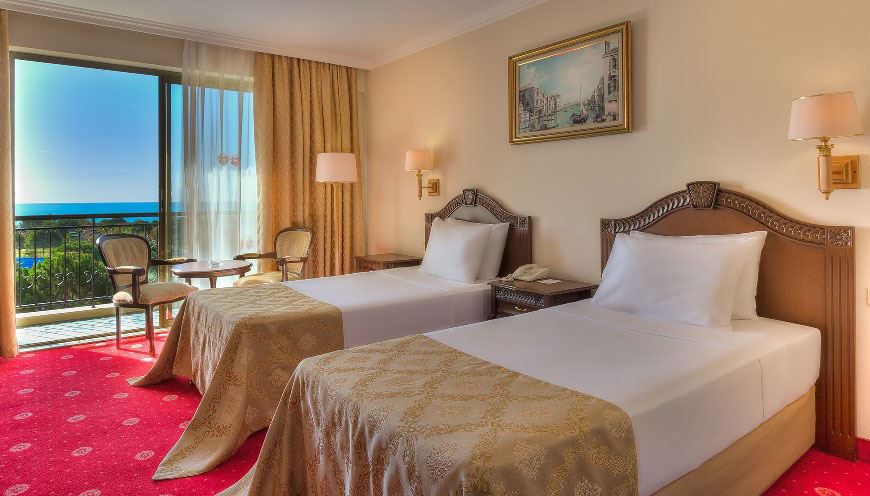 Всего в отеле 541 номер (382 номера категории Standard, 44 номера Eco, 57 номеров категории Castello, 40 номеров Standard Family, 15 номеров Castello Family, 1 номер Royal Suite, 2 номера Villa):