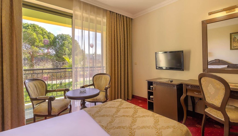 Номера расположены в блоках Сан-Марко и Санта-Мария, вид на сад, 1 двуспальная кровать или 2 односпальные кровати, ванная комната с ванной, балкон;