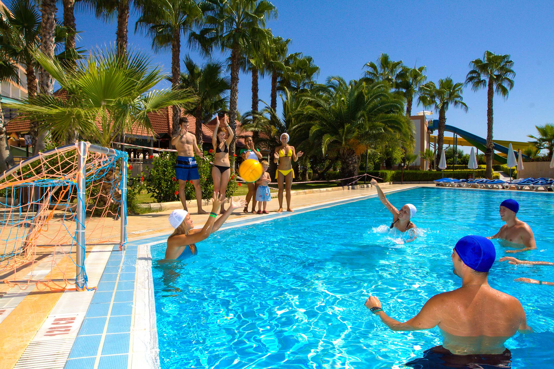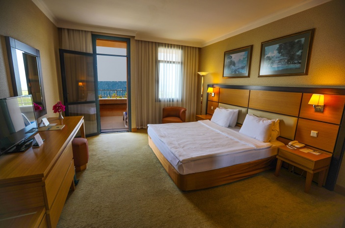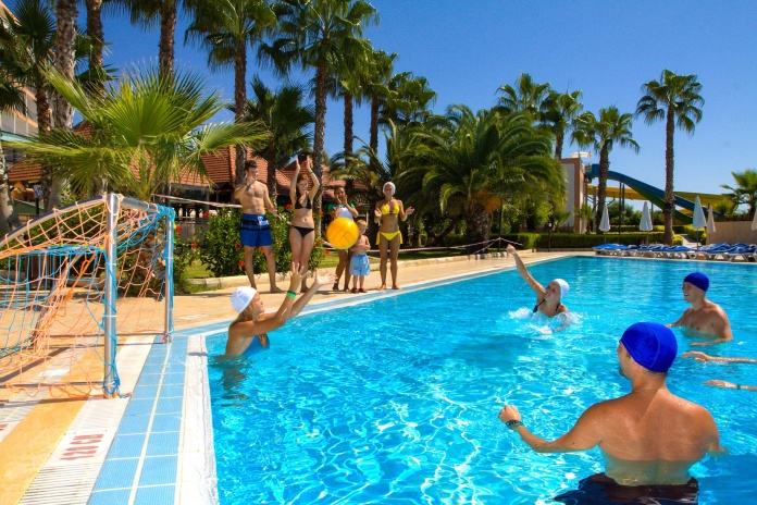 Отель подойдет для активного отдыха – здесь есть теннисные корты, волейбол и баскетбол, анимационная программа в течение дня. Данный отель также можно рекомендовать для проведения конференций и спортивных сборов: 8 конференц-залов, профессиональные футбольные поля.