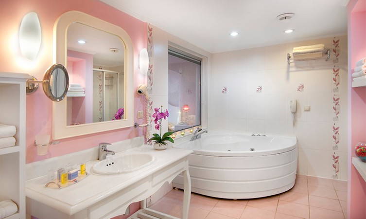 Номера расположены в основном здании, 2 спальни: двуспальная и 2 односпальные кровати, гостиная комната, 2 ванные комнаты (одна из них с джакузи), балкон, вид на море, специальное VIP-обслуживание: знакомство с гостями у входа в отель, индивидуально оформленные номера, корзина с фруктами в номер, десертная тарелка, печенье, шампанское по прибытии, скидка на бронирование павильона на пляже, завтрак в номер (по запросу), скидка в спа, поздний выезд (при наличии возможности);