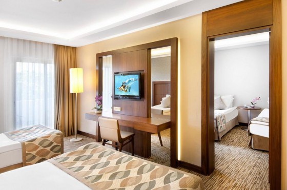 Всего в отеле 596 номеров. Standard Garden/Sea View - главное здание, 30 кв.м., макс. 2 взр.+2 реб. Family Room - главное здание, 50 кв.м, макс. 4 взр.+1 реб., 2 спальни с дверью. Honeymoon Deluxe - главное здание, 40 кв.м., макс. 2 чел. King Suite - главное здание, 85 кв.м, 3 взр.+1 реб., гостиная, 2 спальни с дверью, 2 ванные комнаты. Deluxe Apart Villa А - бунгало, 84 кв.м, 4 чел., гостиная, 2 спальни с дверью, 2 ванные комнаты, джакузи, мини-кухня. Deluxe Apart Villa В - бунгало, 65 кв.м, 2 взр.+2 реб., гостиная, 2 спальни с дверью, 2 ванные комнаты, джакузи, мини-кухня.