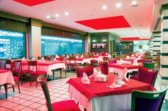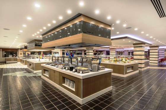 Отель работает по системе Ультра Все Включено главный ресторан Kervansaray (1100 чел., есть летняя терраса) детский буфет в главном ресторане 3 ресторана A la Carte (19:00-21:00, платно):рыбный, турецкий, итальянский бар на пляже (10:00-16:00) бар у бассейна (10:00-16:00) лобби-бар (24 часа) диско-бар (21:00-02:00) бар Fiesta (22:00-00:00)