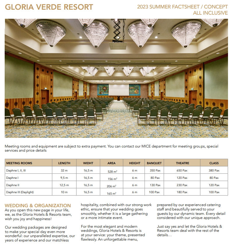 Входит в сеть Gloria Hotels & Resorts, общая площадь комплекса 2,122000 м², см.карту комплекса.