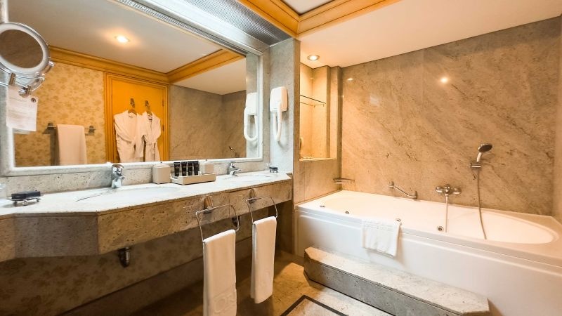 В номерах: Wi-Fi, капсульная кофемашина Schiller, набор для приготовления чая/кофе, чайник, халат, тапочки, весы, банные принадлежности, телефон, зеркало для макияжа, фен, мини-бар (ежедневное пополнение), кондиционер (центральная система кондиционирования), меню подушек, сейф, телевизор.
