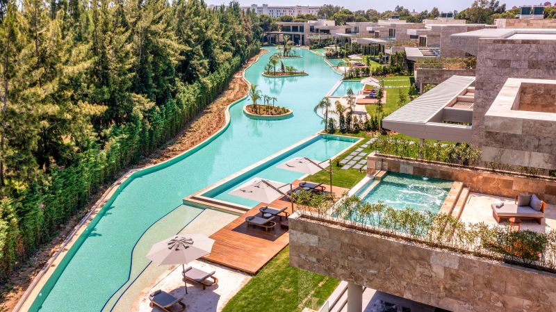 Двухэтажные номера расположены на поле для гольфа. На первом этаже: гостиная комната, кухня, гардеробная, комната для стирки и глажки, открытая барная зона, 2 комнаты для персонала, кабинет, 2 гостевые туалетные комнаты, комната для занятия фитнесом, сауна, паровая, терраса для занятий йогой, терраса, персональный бассейн с пресной водой с подогревом, частный бассейн с морской водой, частный песчаный пляж. На втором этаже: 5 спален (3 с двуспальными кроватями, 2 с 2 односпальными кроватями), гардеробная, ванная комната, персональный бассейн infinity, телевизионная комната, мини-кухня, летний душ, балкон, вид на бассейн и поле для гольфа, услуги дворецкого, см.описание и фото концепция лето 2024;