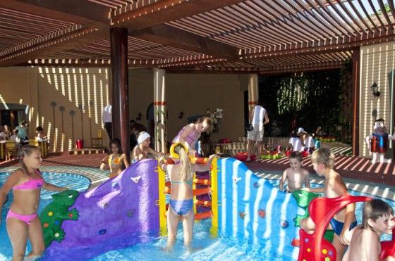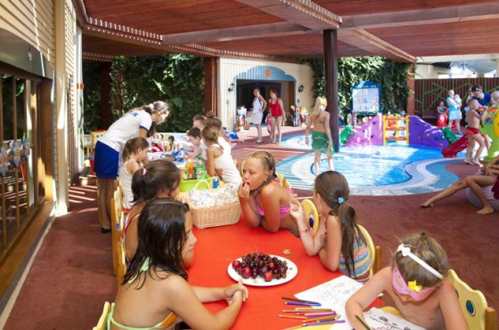 2 детских бассейна мини клуб ( для детей 4 до 12 лет ) игровая комната детский буфет няня (платно) прокат колясок 2 игровые площадки ( одна на пляже)