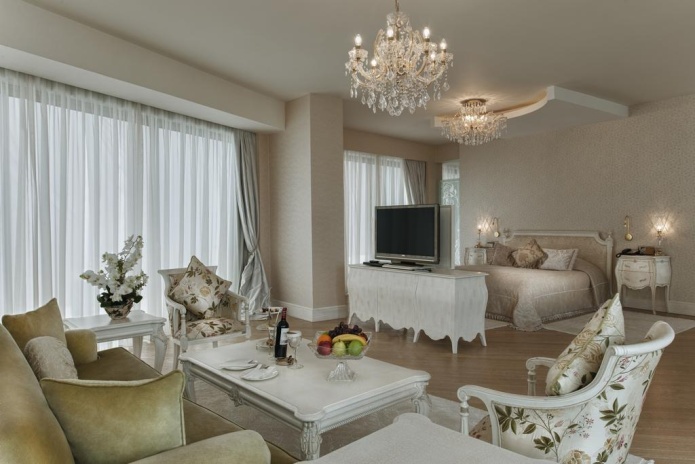 • Royal Suite (уголок для отдыха с джакузи, двуспальная кровать king size и 2 дивана, 100 м2)