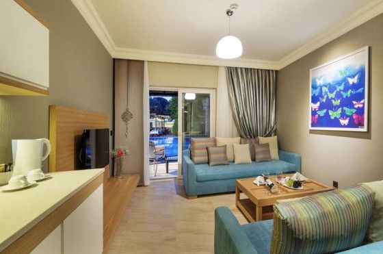 Deluxe Villa - на первом этаже: гостиная с кухней (оборудована обеденной зоной и мягкой мебелью), терраса, телевизор, ванная, спальня с дверью; на втором этаже: 2 спальни с дверью, 2 ванные комнаты; приватный открытый бассейн, макс 6 чел., 175 кв.м.