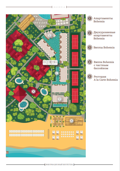 - 12 номеров Bohemia Suites (75 м², макс. 2+1).
