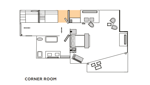 - 28 номеров Corner Room (47 м², макс. 3 чел.).