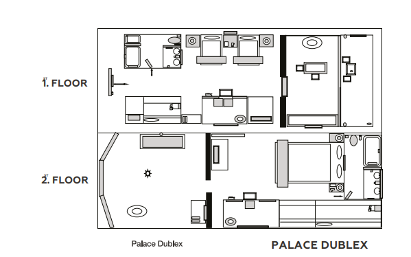- 7 номеров Palace Dublex (80 м², макс. 3+1 или 2+2).