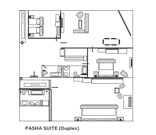 - 8 номеров Pasha Suite (150 м², макс. 6+1).