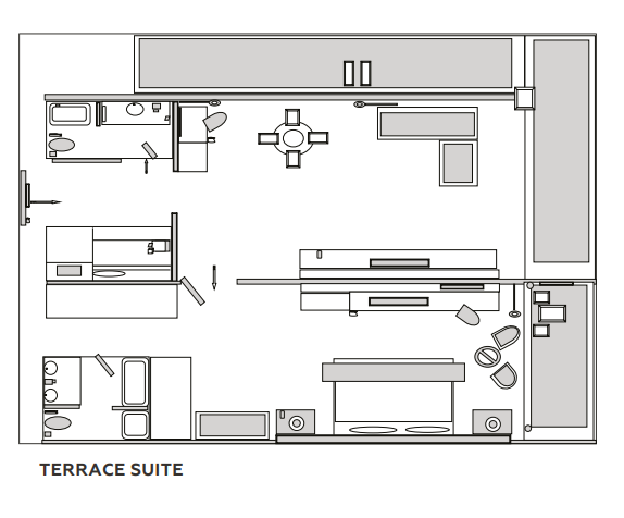 - 9 номеров Terrace Suite (95 м², макс. 3 чел.).