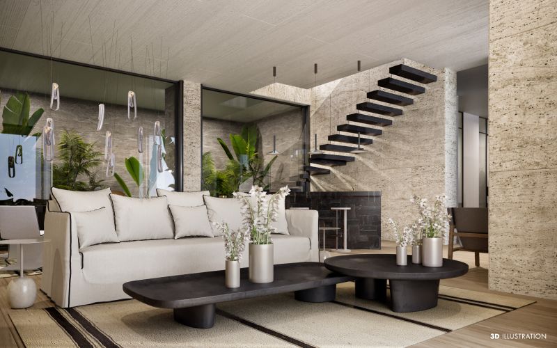 Частная вилла, 4 спальные комнаты (двуспальная кровать и две односпальные кровати - нижний этаж, 2 двуспальные кровати - верхний этаж), гостиная комната с диваном и обеденным столом, 4 ванные комнаты с душем, меблированная терраса, персональный бассейн с морской водой и подогревом, павильон на пляже, вид на море;