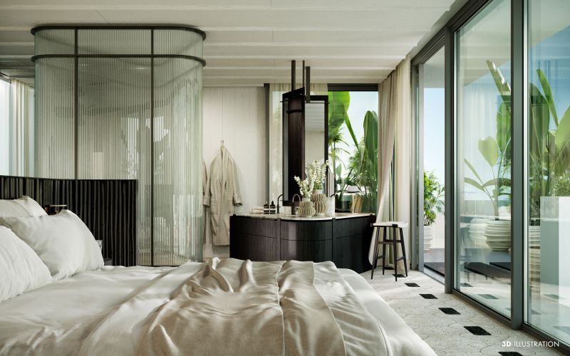 Номера расположены в блоках Royal Residence, спальня с двуспальной кроватью, гостиная комната с диваном-софа типа L, 2 ванные комнаты с 2 раковинами и душем, гардеробная, меблированная терраса, вид на море;
