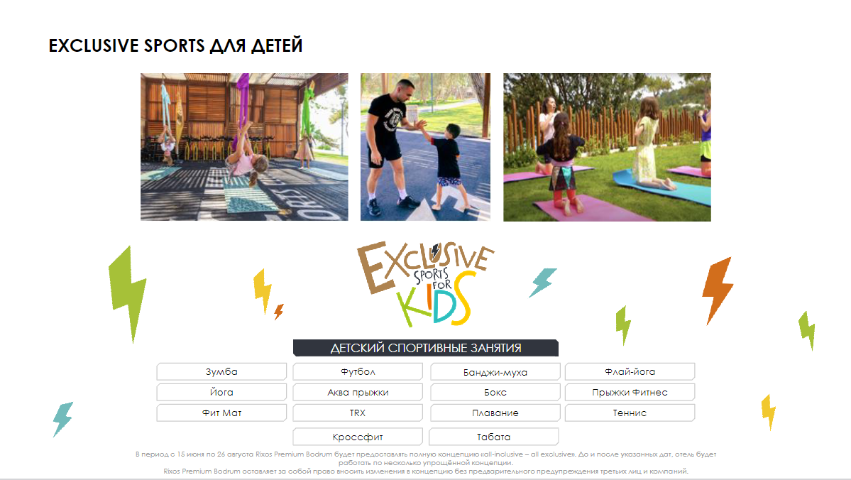 «all-inclusive – all exclusive». До и после указанных дат, отель будет работать по несколько упрощённой концепции. Rixos Premium Bodrum оставляет за собой право вносить изменения в концепцию без предварительного предупреждения третьих лиц и компаний.