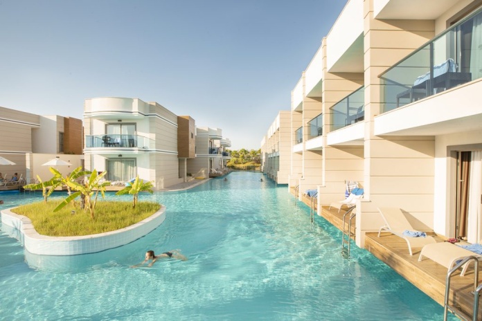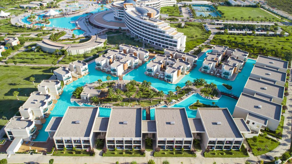Aquasis De Luxe Resort & Spa расположен на берегу моря, отель состоит из основного пятиэтажного здания, двухэтаджных коттеджей Lake Houses, одноэтажных бунгало Sunset Terrace и 4 двухэтажных вилл. На территории отеля несколько открытых бассейнов для взрослых и детей, аквапарк, теннисные корты, тематические рестораны, большая игровая зона для детей, спа-центр и конференц-зал.