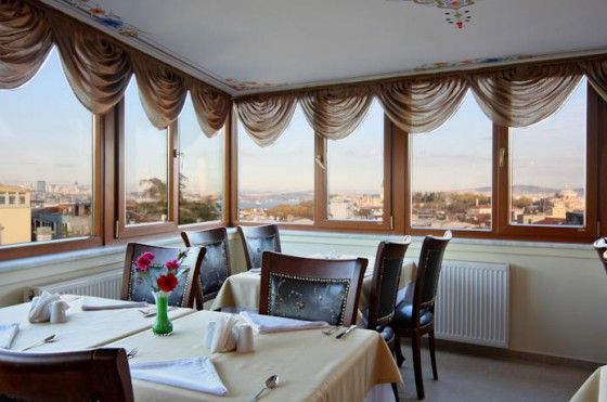 Основной ресторан, кафе-ресторан на крыше отеля с панорамным видом на Старый город и Стамбул, лобби бар.