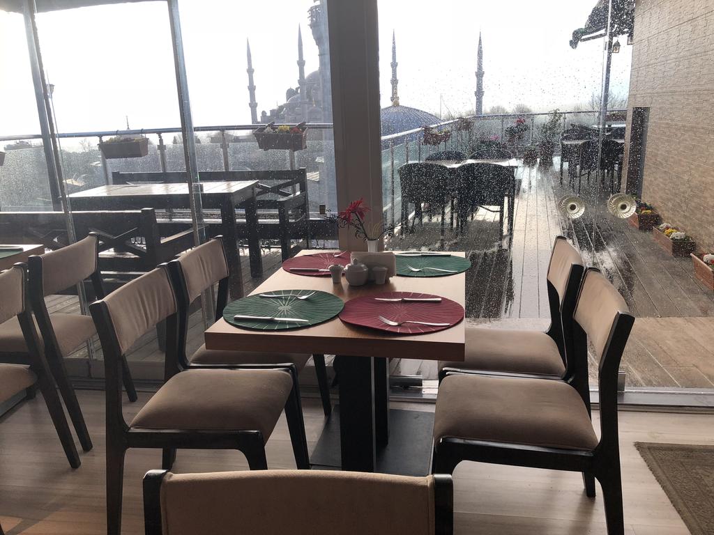 В ресторане отеля подают блюда традиционной турецкой кухни. Ресторан находится на террасе на крыше с панорамным видом на Мраморное море и площадь Султанахмет.