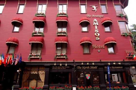 Amisos расположен в самой древней части центра Стамбула, бывшей столицы Византийской и Османской империй. Отель был отремонтирован в марте 2007 года. Отель выполнен в Дворцовом стиле в сочетании стиля барокко. В 10 минутах ходьбы находится Дворец Топкапы, а до археологического музея Стамбула - 800 метров. Расстояние до аэропорта имени Ататюрка составляет 21 км.
