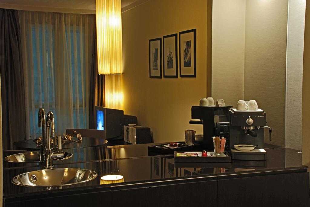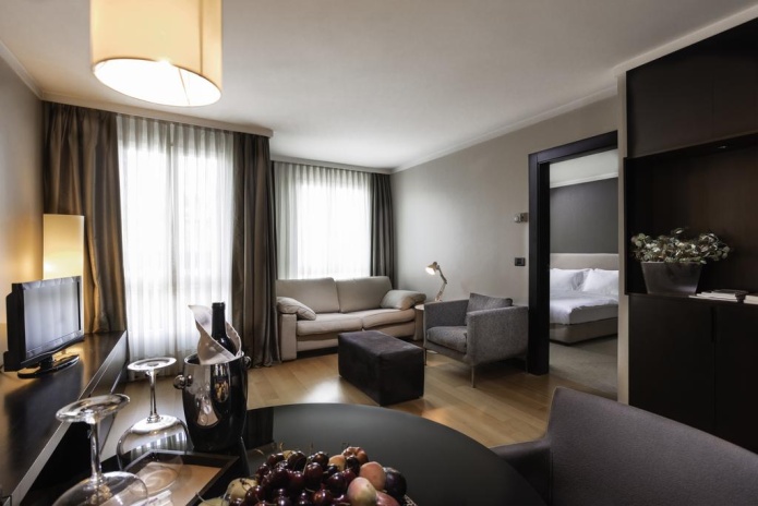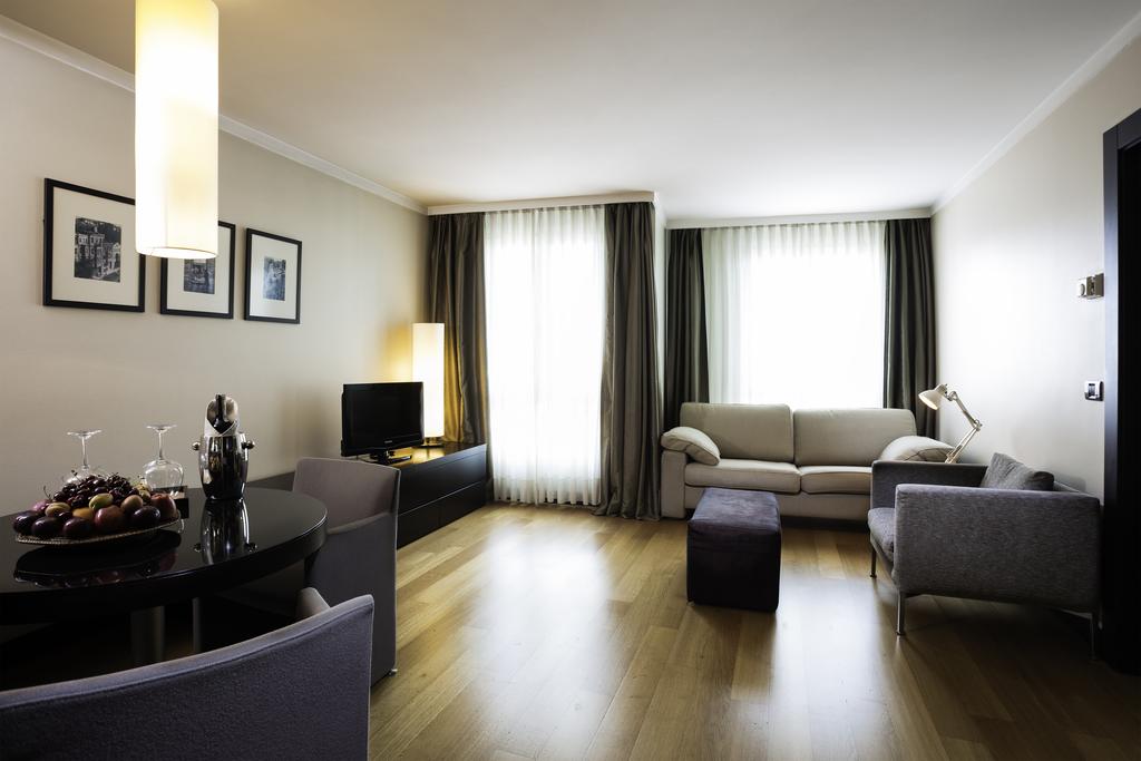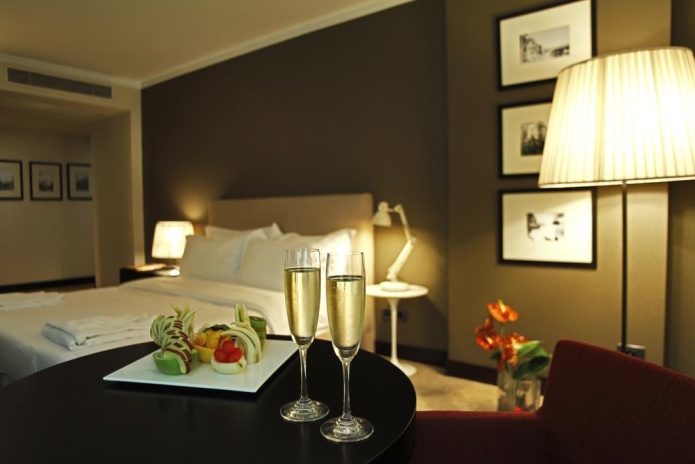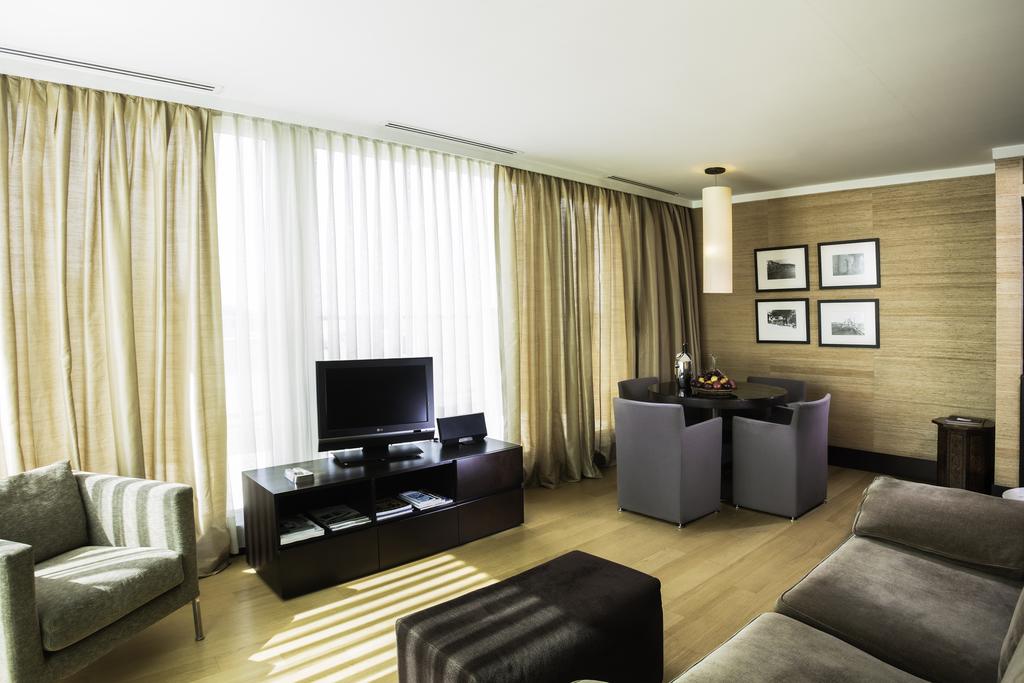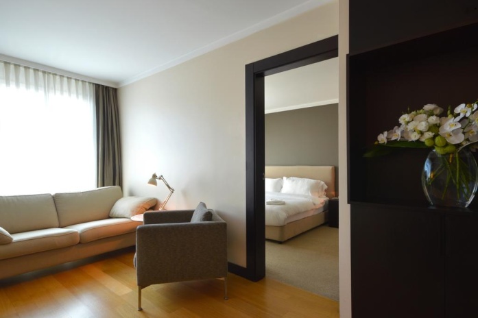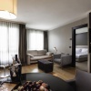 • Люкс — 39 м², спальня с большой двуспальной кроватью, гостиная с диван-кроватью и мини-кухня, максимальное размещение 3 гостя